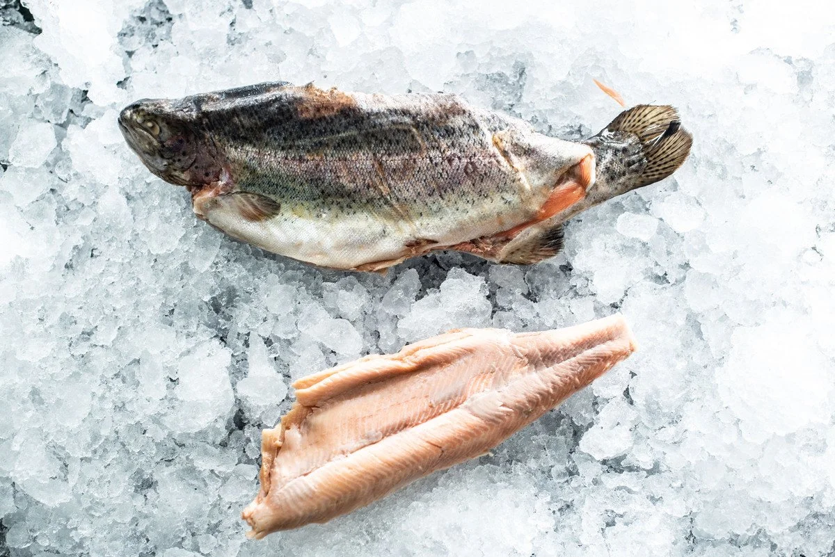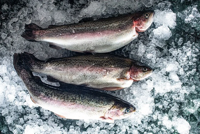 Freshwater trout are introduced to ponds as fingerlings. Water is diverted from creeks and rivers to flow through the ponds to ensure a constant flow of cold clean fresh water. Those waterways start in the forests of the Great Dividing Range, valleys lined with towering mountain ash and ancient stringybark trees. That clear water is critical to the beautiful clean taste that Victorian trout are renowned for. The trout are fed four to five times a day. It takes 11 months to reach the average size of 600g and over two years to gain the size of 3kg king trout. With a fast, modern, clean and efficient cold chain trout can be taken from the pond, be processed, sent to market, be purchased by a retail customer and be on the plate within 24 hours.